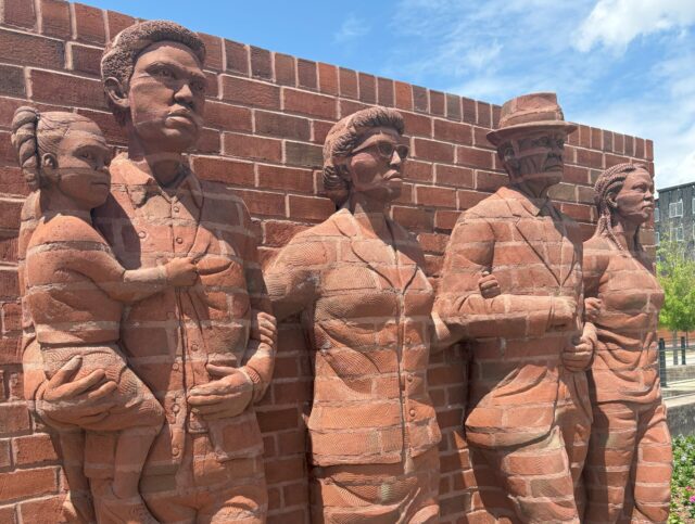We visited the Legacy Museum, National Memorial for Peace and Justice, and Freedom Monument Sculpture Park. Not far from the National Memorial, we also met with artist Michelle Browder on the More Up Campus to take in the Mothers of Gynecology Monument – a set of sculptures of three enslaved women (Anarcha, Betsy, and Lucy) who suffered experimental gynecological surgery by Dr. J. Marion Sims.